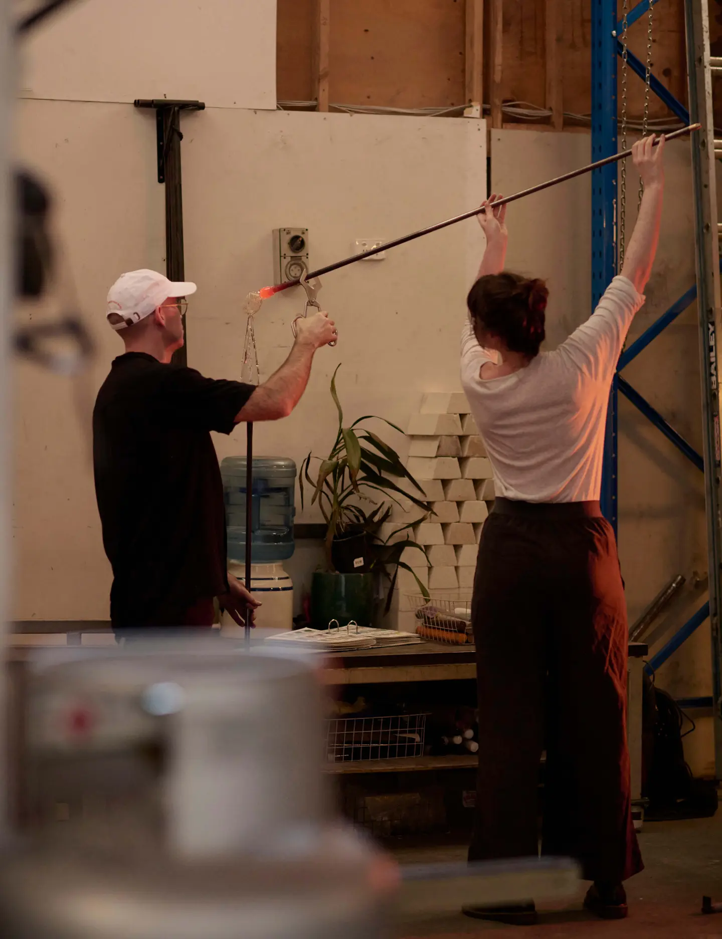 My practice is split between making my own work, producing functional and commercial pieces, and running public glassblowing classes. Teaching has become a significant part of the studio — both as a way to sustain the business and to build a broader community around the material.